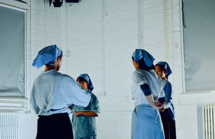 In the performance, the sounds of the destruction and the making of textiles are recorded in live, looped mechanically, as a display of the industry tangible with audio. The performers weave in the space, connected by the fluctuating thread tangled around their bodies, continuously negotiating for chances to move, to turn, to untangle.